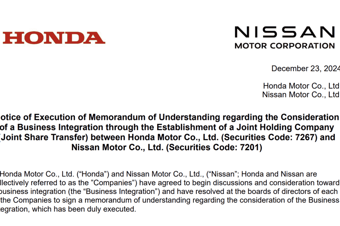 本田、日产官宣合并计划,本田将领导新公司管理层。