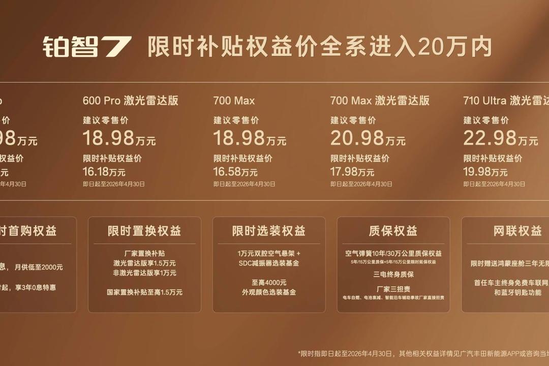 限时权益价14.78万起 广汽丰田铂智7正式上市 搭载华为鸿蒙5.0座舱